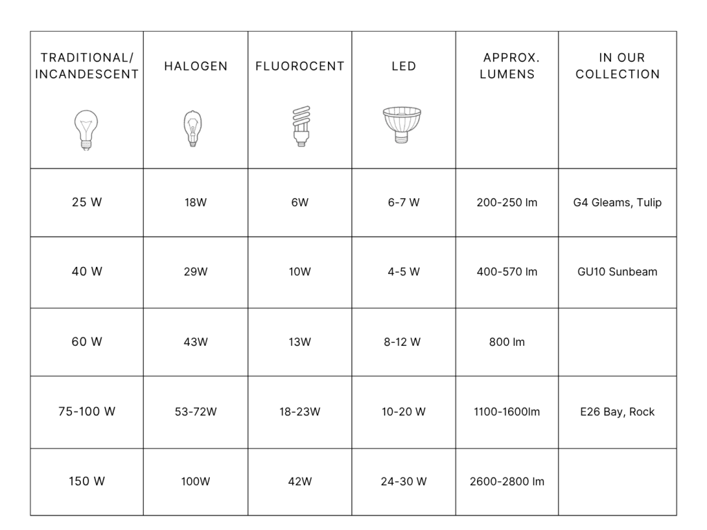 Traditional Bulbs (Incandescent, Halogen, Filament):