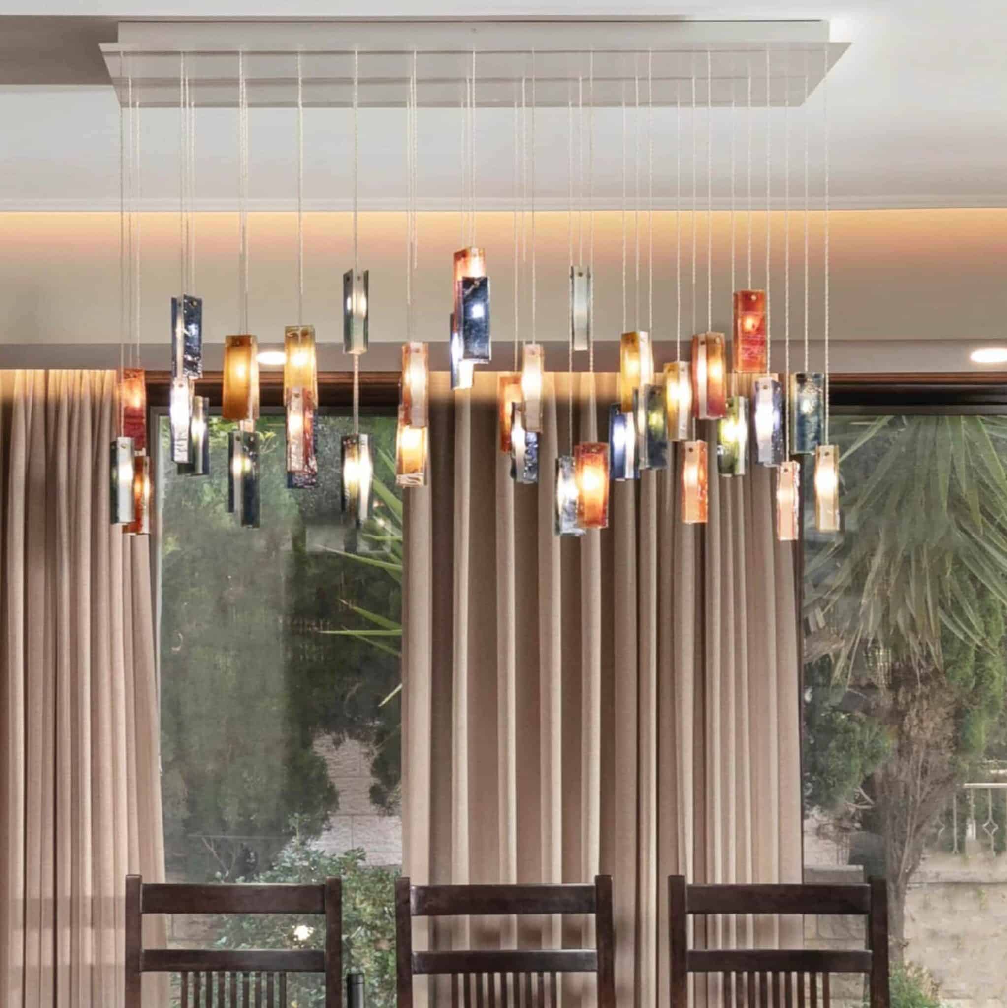 This light fixture turned out to be a wonderful art installation, not just a pretty light. Shimal’e Peleg was so helpful with the decision making and it arrived in a timely manner with not a single broken piece!