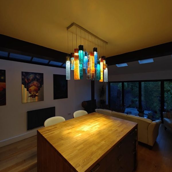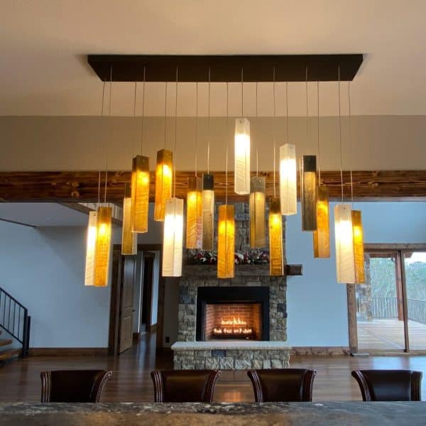 Each light fixture is made to order. We will work with you to design a light fixture that will fit your space perfectly