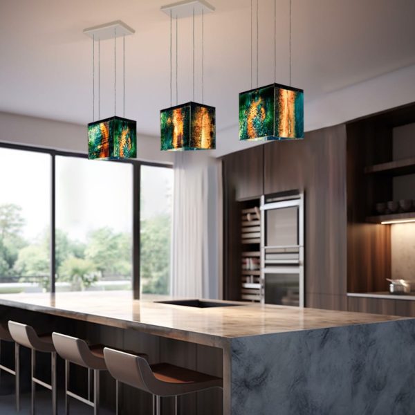 Each light fixture is made to order. We will work with you to design a light fixture that will fit your space perfectly